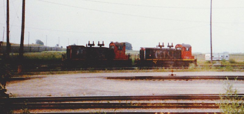 In 1989, Oshawa's yard goats were switchers including SW1200RS 1364 and SW1200 7721 (the latter retired a year later), and high-nose Geeps.  Soon, GP9 mother-slug sets would be assigned here, though fewer in number.  Missing today are the riotous rainbow hues of US road boxcars...the red and grey of SP, the cool turquoise of Penn Central, the stately blue of B&O and the outrageous orange of ICG.  Eighty-six foot hi-cubes and 50- and 60-foot double-door boxcars are replaced today by a few 60-foot hi-cube cars with vaguely Tex-Mex-looking reporting marks.  The cross-border auto trade has indeed changed.