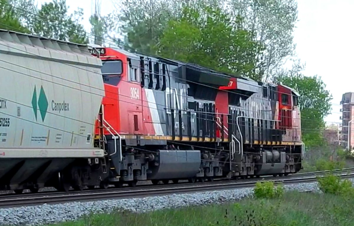 On May 22, thanks to some OS reports from fellow railfans, I was able to catch up to eastbound potash unit train CN No 730 at Mi 179 Kingston Sub. Barrelling down the south track, the train splits the signals 1796S and 1796N: