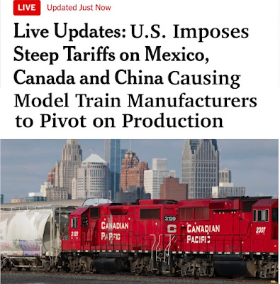 You'll see a prominent dual-flags sidebar item to visibly indicate my dedication to the many American readers of Trackside Treasure. Issuing blanket statements about ALL Canadians or ALL Americans is not realistic to me, and something I will not engage in. There are lots of Americans who did NOT vote for the current administration, and there are lots of other Americans who did and are likely now regretting their votes. Politics is a dirty business and this is a train blog.
