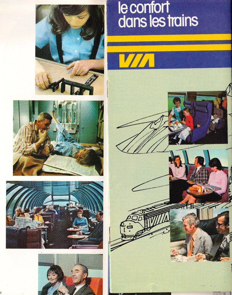 VIA converted the punch-out artwork for Jasper to their blue & yellow paint scheme from CN's black & white. VIA continued to feature the Sceneramics in their accommodations brochures, albeit with updated passenger fashions. Groovy, baby!